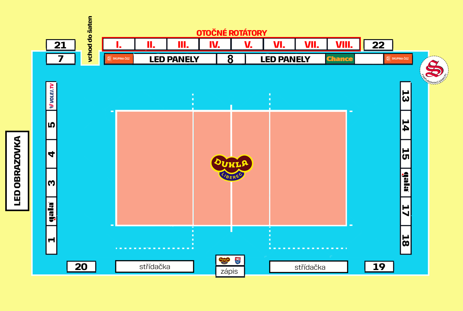 Všechna domácí utkání mají svůj plán hrací plochy, kde jsou umístěny různé formy reklamy